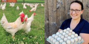 Hühner halten sich stets in Stallnähe auf. Dadurch fressen sie die Umgebung schnell kahl. Diese wird dann matschig und zum Nährboden für Parasiten. Abhilfe schaffen mobile Ställe, die immer fisches Grün bieten. Picken und Scharren ist für den gesunden Lebenswandel und damit für den guten Geschmack von Fleisch und Eiern grundlegend. Das Futter muss aus biologischem Anbau oder aus kontrolliert konventionellem Anbau bäuerlicher Betriebe der Region stammen.