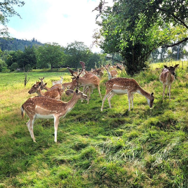 Max Hofinger und seine Lebensgefährtin Gabi Seidl haben 2008 die elterliche Hofstelle übernommen. In wunderschöner Lage über dem Regental halten sie Damwild im Gehege und einige Angusrinder auf der Weide. Das Futter liefern die artenreichen Bergwiesen.