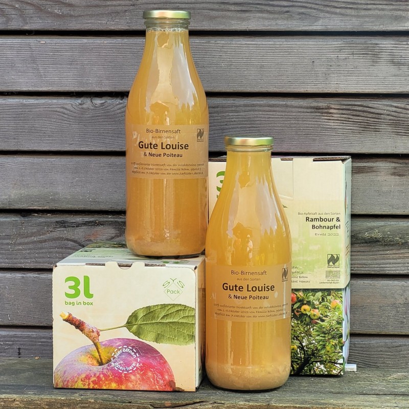 Etwa die Hälfte der Früchte verkauft er als Frischware, der Rest wird gemostet. Michael Böhm bietet viele Säfte aus allergikerfreundlichen alten Apfelsorten wie Kaiser Wilhelm und Winterrambur an.