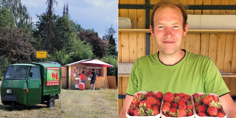 Erdbeeren biologisch nachhaltig anzubauen ist ein alter Wunsch des Christoph Wasinger. Nach einigen Lehr- und Wanderjahren pachtete er geeignete Feldflächen in Pfatter. Hier baut er seine geliebten Erdbeeren im Wechsel mit Feldfrüchten an. Zurecht stolz ist Christoph auf die 2021 abgeschlossene Bio-Zertifizierung, weil er immer schon ungespritzte Erdbeeren in bestmöglicher Qualität als Ziel hatte.