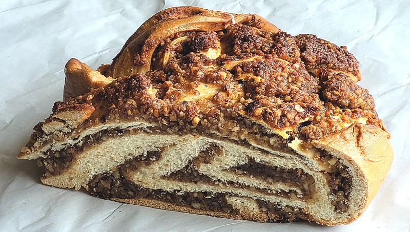 Die angesagte Spezialität des Hauses ist der Nusszopf mit 2/3 Nussfüllung und 1/3 Teig. Er hält sich lange und wird auf Wunsch verschickt.