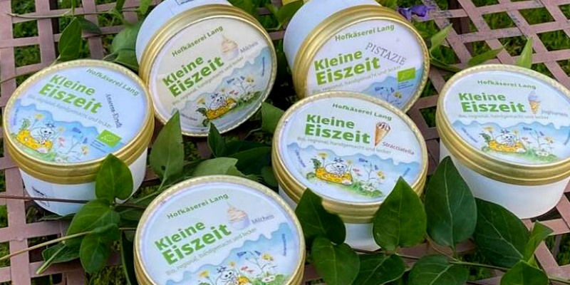 Ein direkt vom Bauernhof kommendes handgemachtes Bio-Eis ist eine echte Rarität. Renate und Sebastian Lang, seit 2005 bei Naturland, verwenden die Milch ihrer 22 Milchkühe und regionale Zutaten in Bio-Qualität. Im saisonalen Wechsel bieten sie mindestens 10 verschiedene Sorten an, speziell auch für den Winter.